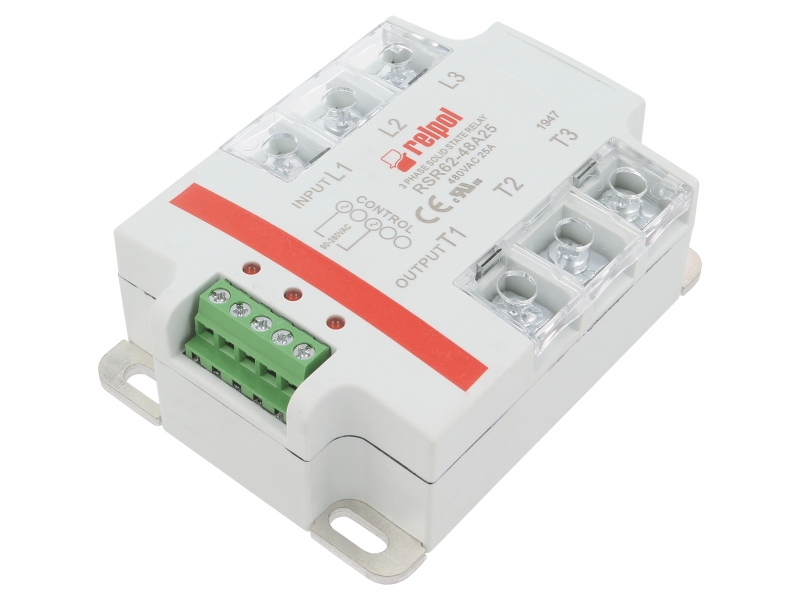 Dal punto di vista elettrico, i relè supportano tensioni fino a 280 V AC nei modelli PCB e fino a 660 V AC nelle versioni industriali, con correnti fino a 80 A e tempi di commutazione di circa 50 µs. Per applicazioni trifase, la serie RSR62 consente il controllo di carichi impegnativi come motori e forni industriali.